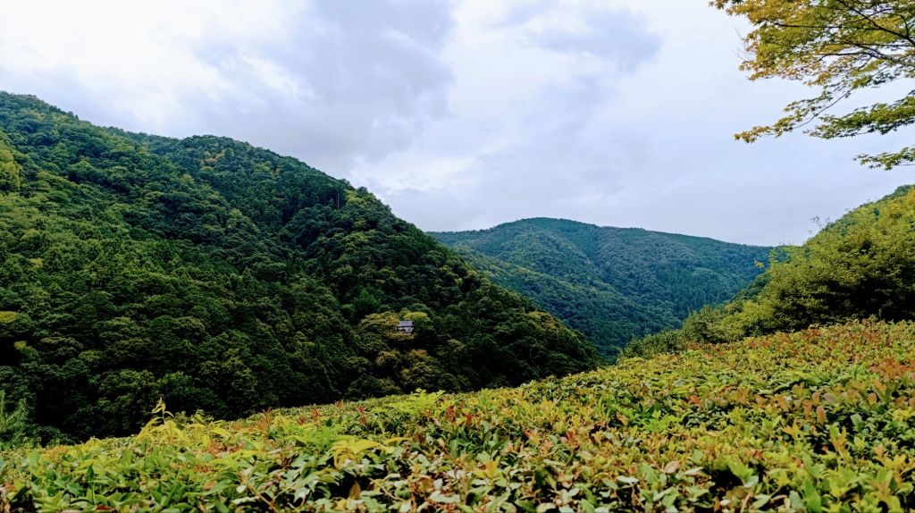 Quelle bonne décision nous avons prise. Nous voilà arrivés dans le jardin « Okochi Sanso ». Pas de temple spectaculaire ici, et encore un chemin à sens unique bien trop tracé à mon goût…mais…presque personne, des arbres qui commencent à arborer fièrement leur parure d’automne, et les bruits de l’agitation en contrebas qui s’estompent petit à petit. Je reprends mon souffle, je respire, je souris, et j’ai même l’occasion de m’accorder une dizaine de minutes de méditation dans un calme relatif.