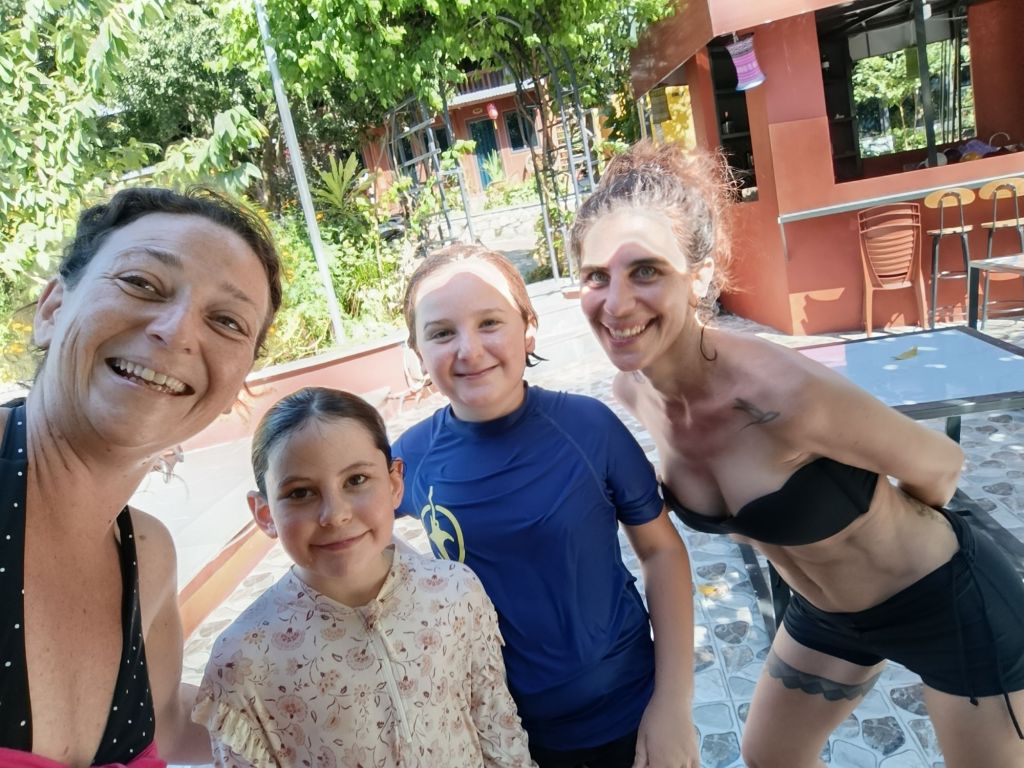 Nous avons également durant cette journée rencontré Lisa, Berlinoise, avec qui nous sympathisons rapidement. Et nous sommes rejoints, en début d’après midi, par Morgane, une amie et ancienne collègue de St Leu, et sa fille Milya, du même âge que Maël. Elles sont elles aussi en voyage pour quelques mois en Asie, et l’anniversaire de Maël était l’occasion rêvée pour se retrouver 😊 Que la fête commence 😉