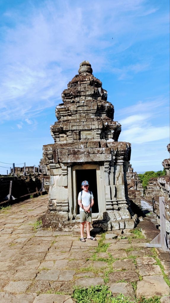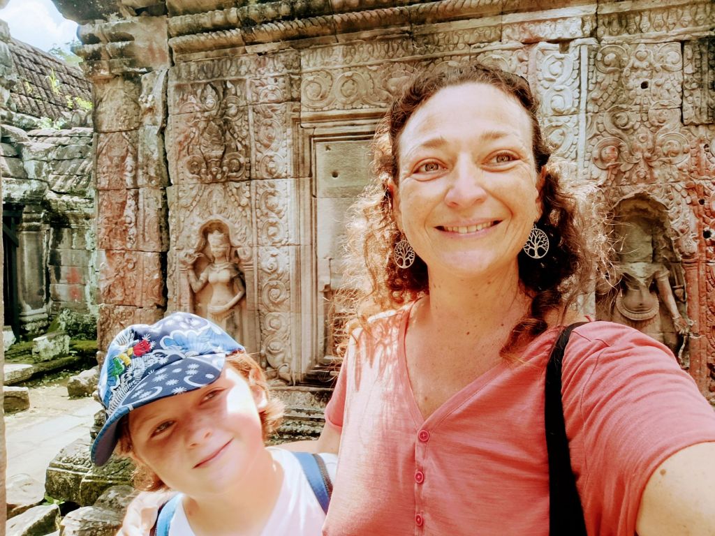 Nous avons donc poursuivi nos visites une deuxième journée, pour explorer des temples moins fréquentés. Moins spectaculaires certes en termes de conservation que celui d’Angkor Vat, mais leur situation au milieu de forêts luxuriantes en fait des lieux absolument époustouflants, d’où l’on voudrait parfois ne pas repartir. Ils se sont aussi parfois révélés être un extraordinaire terrain de jeu pour les enfants 😜