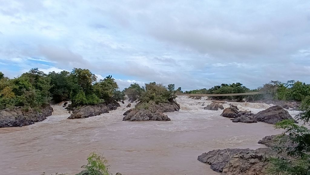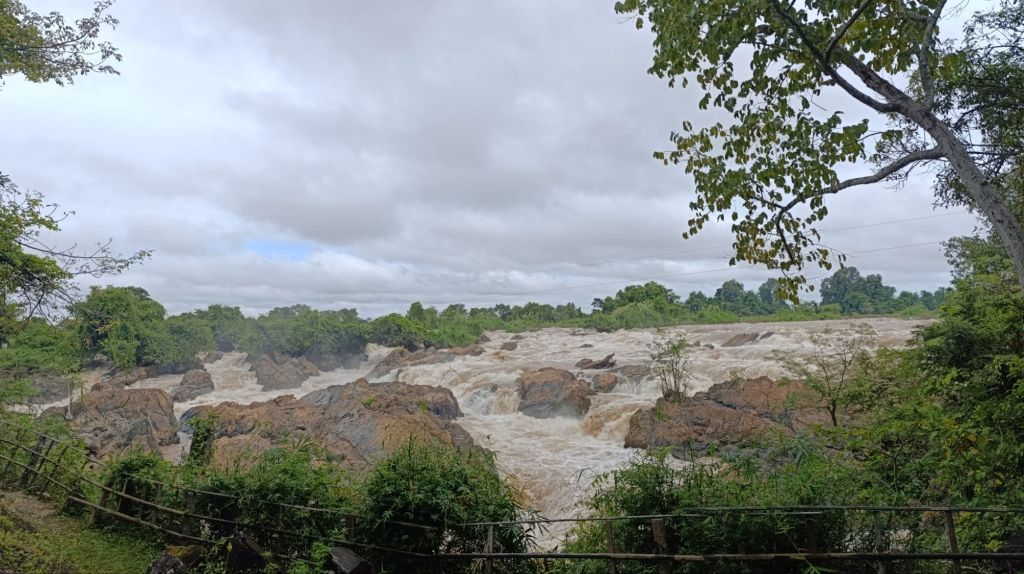 Nous découvrons également les chutes Li Phi somphamit. Il ne s’agit pas de cascades, mais de chutes peu hautes, créant, sur plus d’un kilomètre, des rapides impressionnants dans lesquels on n’aimerait pas se retrouver. L’accès au site est payant (un peu plus d’un euro par personne), mais plusieurs petits sentiers permettent de se promener pour observer le site depuis différents points de vue. Une tyrolienne et un pont suspendu existent également pour traverser ses chutes, mais non n’avons pas tenté l’expérience (mais non enfin, rien à voir avec ma peur du vide! Simplement lié au tarif un peu élevé pour mon budget)