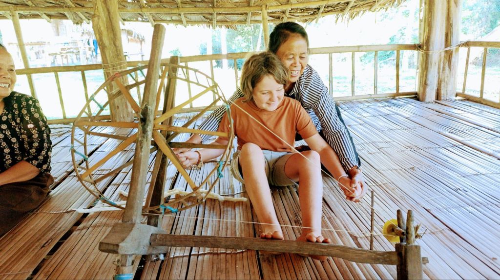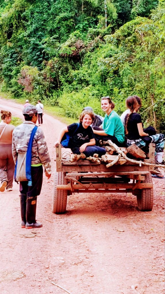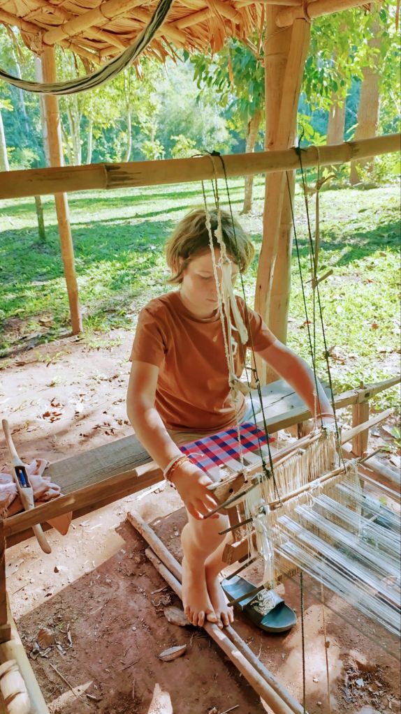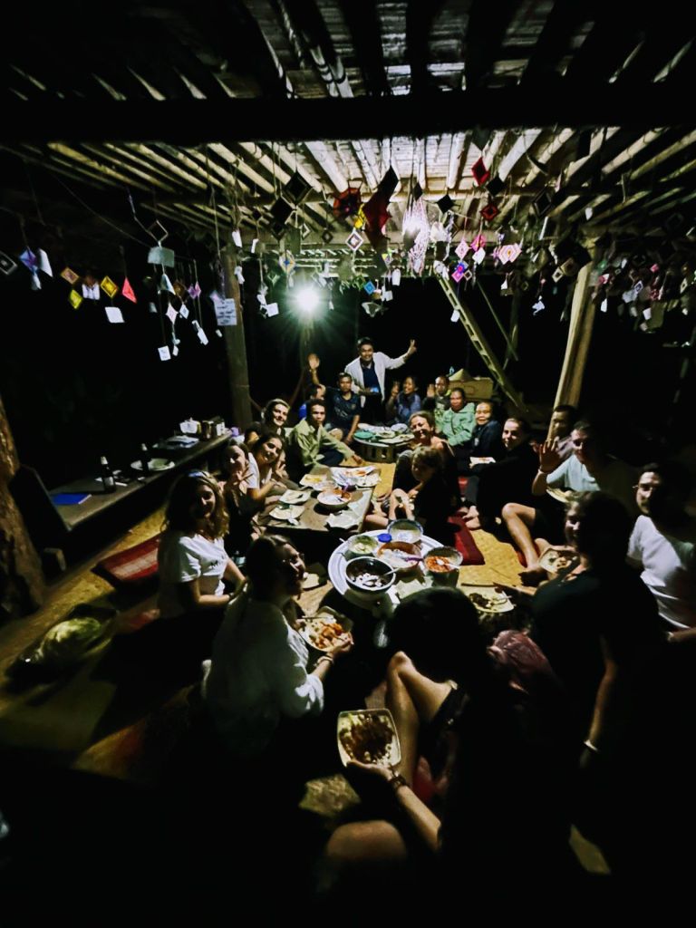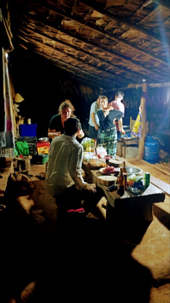Les journées sont rythmées par les repas, toujours délicieux, les rencontres avec les éléphants que l’on part retrouver plus ou moins loin dans la jungle, les activités proposées par les villageois, les activités de « travail » au camp, les départs des uns, les arrivées des autres. (J’avoue…c’est aussi rythmé par les apéros….lao beer ou whisky local 😜).