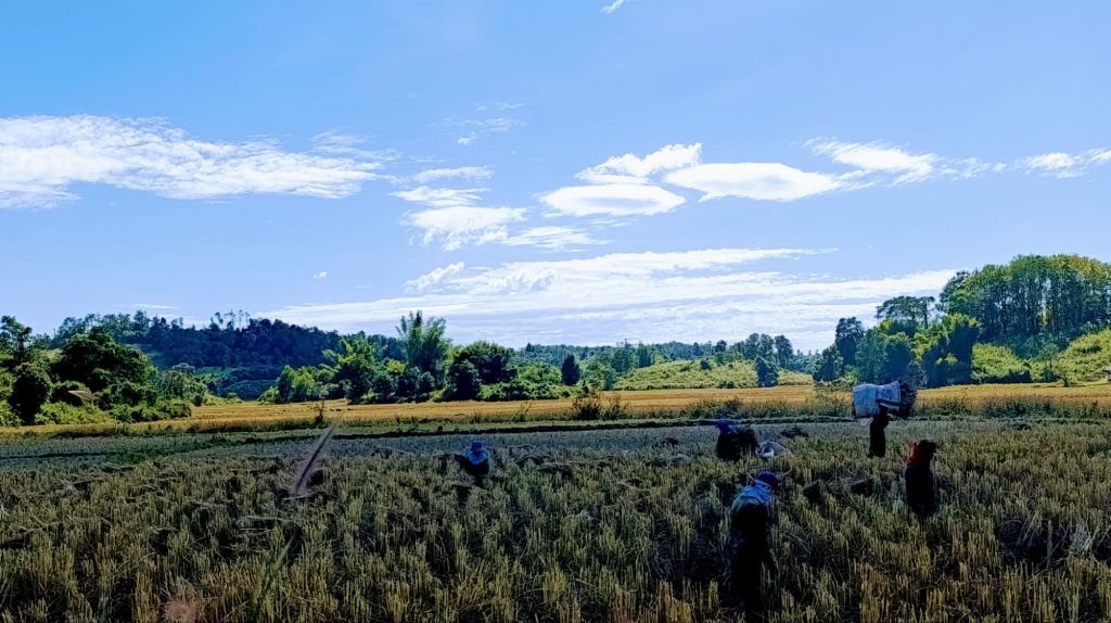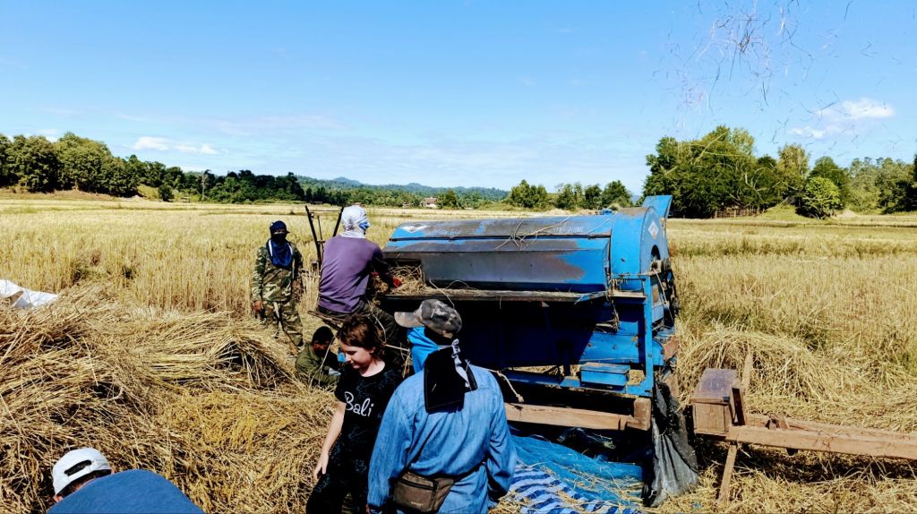 À notre arrivée, nous nous rendons tout d’abord aider l’une des familles du sanctuaire dans leur rizières, où nous rencontrons les autres volontaires.