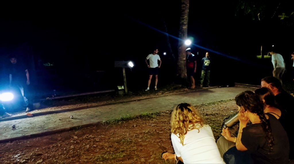 Le camp est composé de petites cabanes en bois et bambou où nous logeons, d’une cuisine extérieure au feu de bois et gaz, d’un espace de vie commun où nous prenons les repas, jouons, discutons, d’un terrain de pétanque (ti boun ici… Une tradition bien ancrée 🙂), d’un espace où ont lieu certaines activités, et des sanitaires (2 blocs wc/ douche… Alimentés directement par l’eau de la montagne.) On retrouve les seaux d’eau dont nous avions pris l’habitude à Madagascar, pas de pommeau de douche ici bien sûr ! Et une chose est certaine…. Le moment douche est….plus que rafraîchissant vu la température de l’eau 🧊