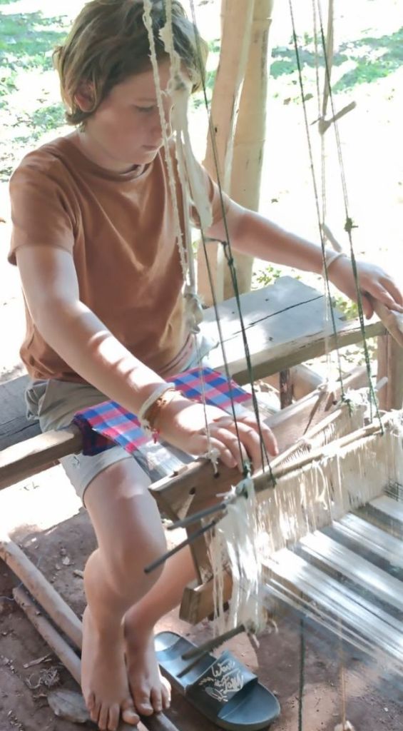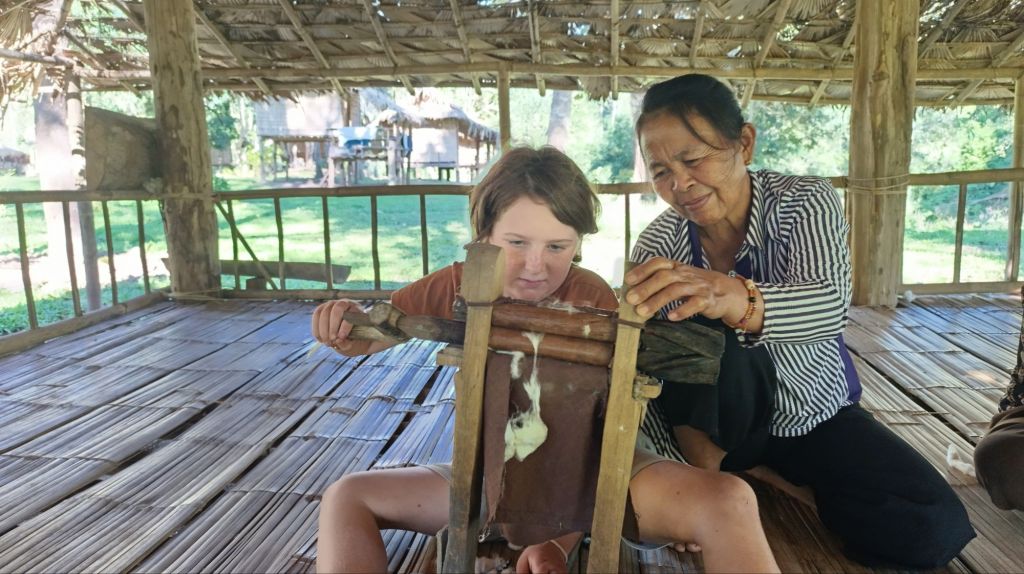 Les villageois laotiens étaient adorables. On travaillait deux heures par jours, mais c’était du petit travail pas du gros. Un jour nous avons eu une activité, qui s’appellait la cotton class: on enlevait les graines de coton avec une machine en bois, après on prennait un bâton de brochette on mettait le coton dessus, on le secouait et on le roulait puis on utilisait une machine en bois pour faire des fils fins. Tous les deux jours, nous allions voir les éléphants. Ils sont domestiqués mais libres. Avant, au laos, ils se servaient des éléphants pour monter dessus, transporter des affaires comme du bois, des sacs de nourritures. Ils ont crée cette association parce qu’un jeune laotien a vu un bébé éléphant qui transportait un immense tronc d’arbre, et il l’a vu pleurer.