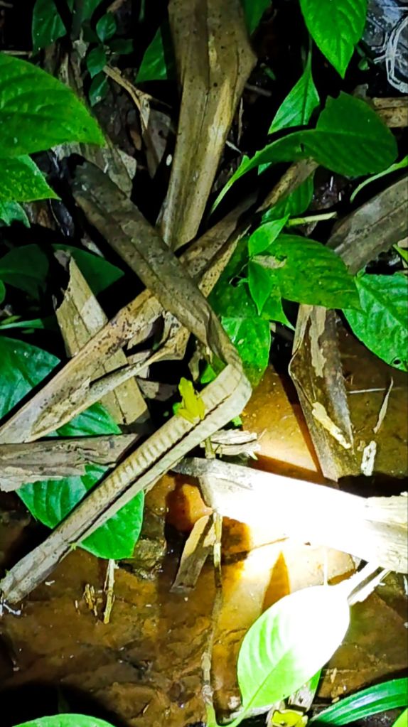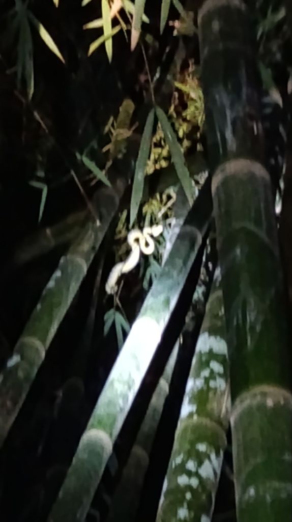 Nous avons revu le serpent de ce matin, Oy nous expliquant qu’après un bon repas, il peuvent rester plusieurs mois au même endroit sans bouger ou presque.